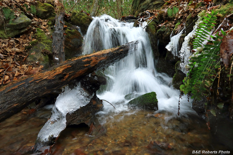 Small icy waterfall on branch of Bell Creek.